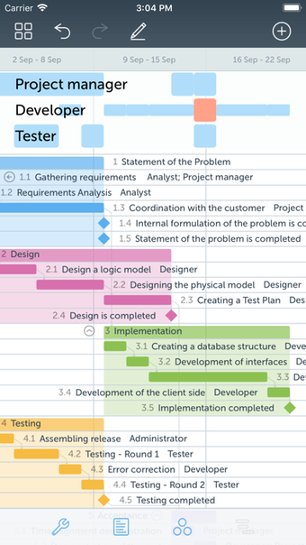 مكتب المشروع: مخطط جانت متاح لنظام iOS 12.1.2 والإصدارات الأحدث. الإصدار الحالي من التطبيق هو 10.13 ، ويمكنك تشغيله باللغات الألمانية والفرنسية والفنلندية.